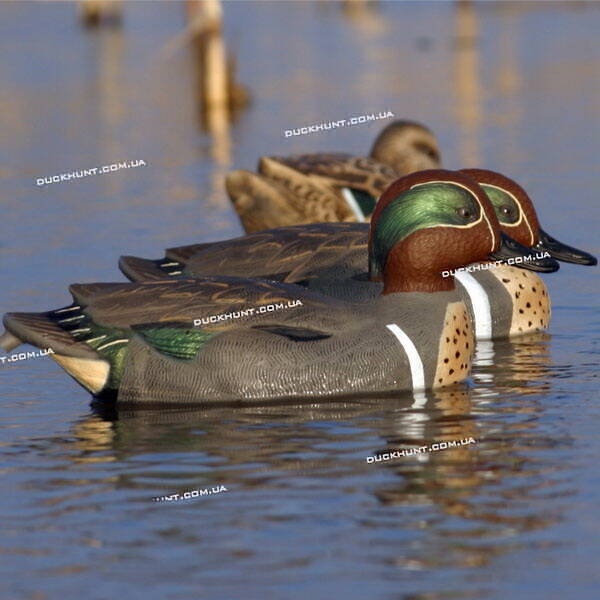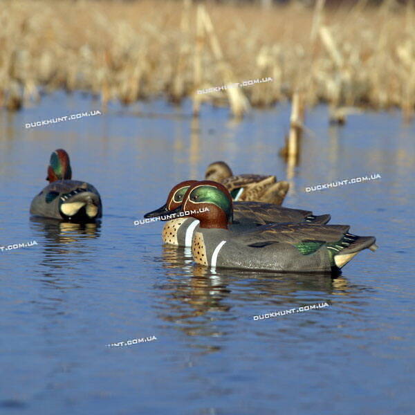 Чучела чирка від американської фірми Flambeau (Флембо). Серія КЛАСИК . Storm Front™2 Classic Green-winged Teal - це повнооб'ємні опудала стандартного розміру з високим кілем. Виготовлені із пластику та пофарбовані матовою, не блискучою фарбою UVision™ (Ультаровіжн), що копіює ультрафіолетове відображення реального пір'я качки. У комплект входять 6 різнопазих опудал (4 селезні та 2 качки).
