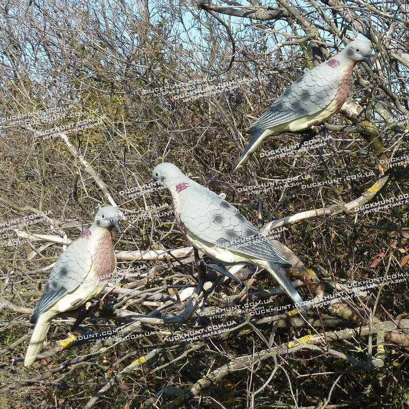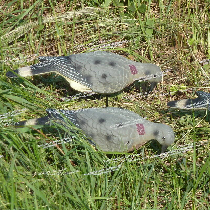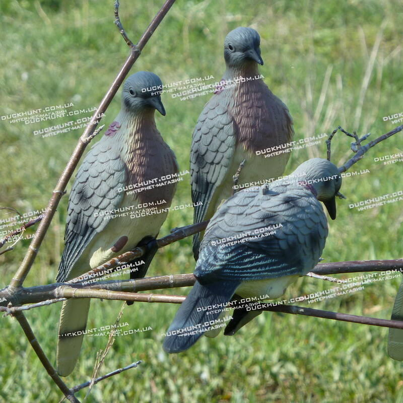 Чучела горлиці на прищіпці Lucky Duck Clip On Dove . Кліпса розташована на опудалі правильним чином, щоб після закріплення воно стало в природну позу. Також в комплект входять кілочки для встановлення опудал на землі біля водопою. Ці опудала можна з легкістю кріпити на гілках, дротах, а також на капелюшках соняшника. У комплект входять 4 реалістичні опудала.