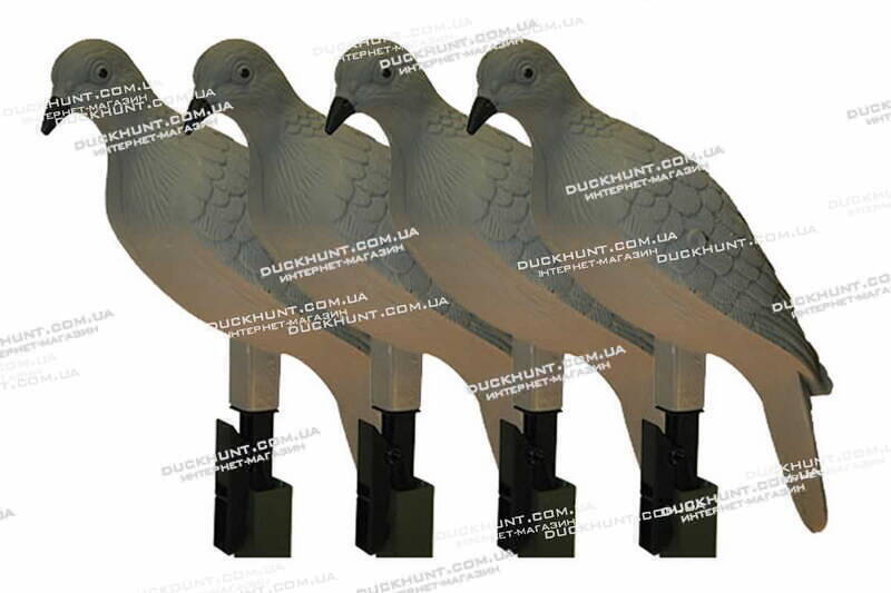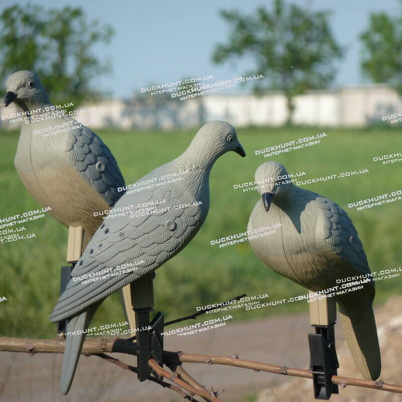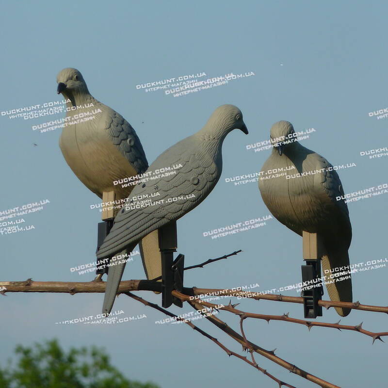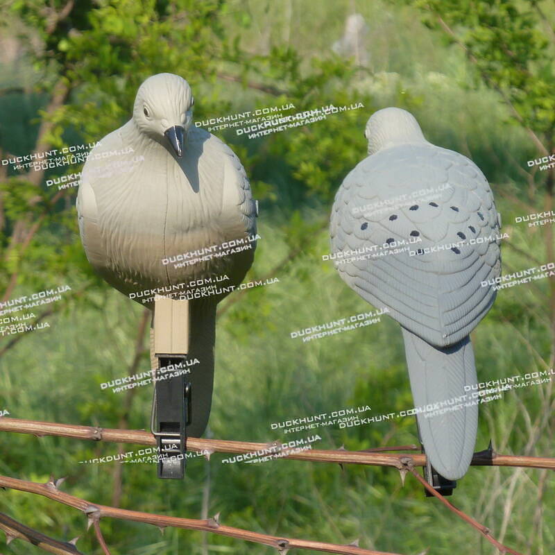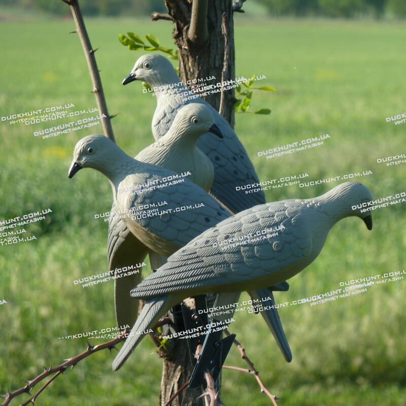 Американська фірма MOJO Outdoors (МОДЖО Аутдорс) представляє вашій увазі опудало горлиць на пластиковій прищіпці. Ці опудала можна кріпити на гілках дерев. У комплект входять 4 реалістичні опудала.