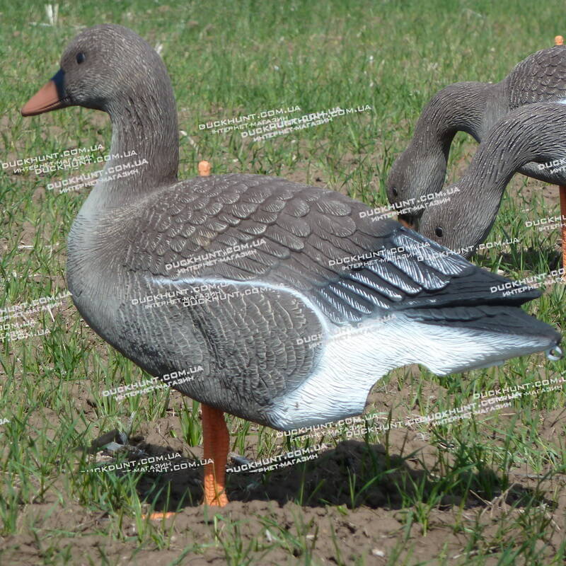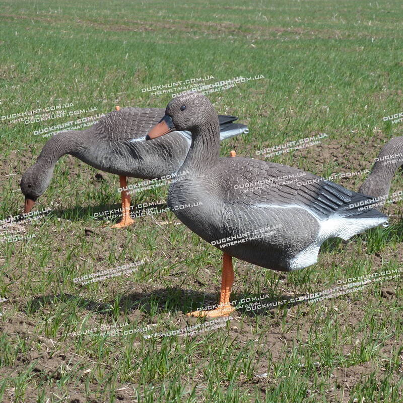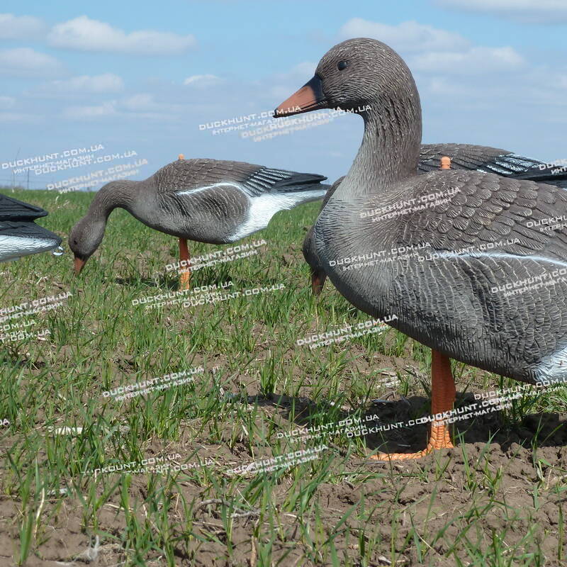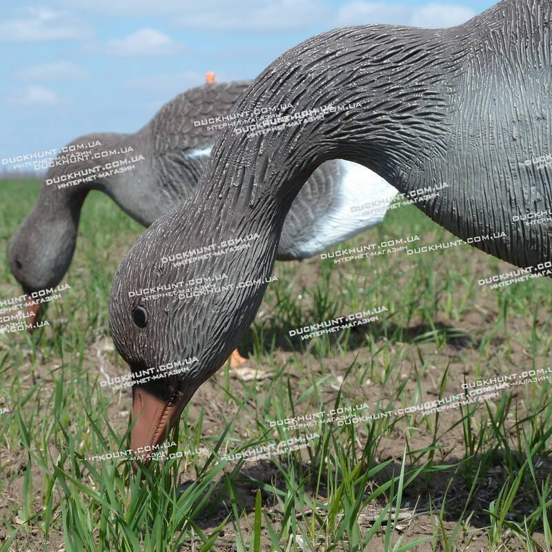 Комплект з 12 об'ємних пустотілих чучел гуменника виробництва італійської фірми Sport Plast (Італія). У комплект входить: 8 чучел, що годуються та 4 сторожових чучел гусака.