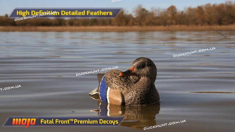Комплект із 6 шт. опудало крякви з відкидним кілем Mojo Fatal Front ™ Premium від Американської компанії Mojo Outdoor s (Моджо Аутдор). У цьому комплекті 2 качки крякви та 4 селезні, у двох позах.