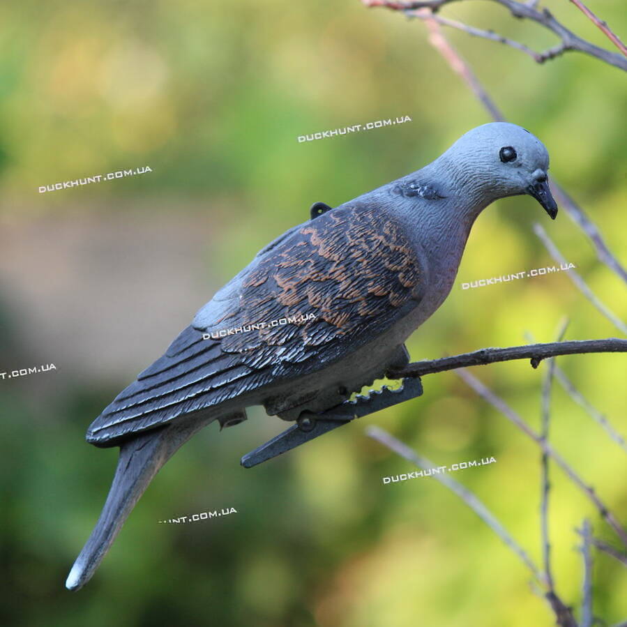 Повнооб'ємне чучело європейської горлиці італійської фірми СПОРТ ПЛАСТ модель 639P . Чучело горлиці має детальне промальовування оперення птиці та реалістичну форму. Це опудало не виблискує на сонці за рахунок матової фарби.