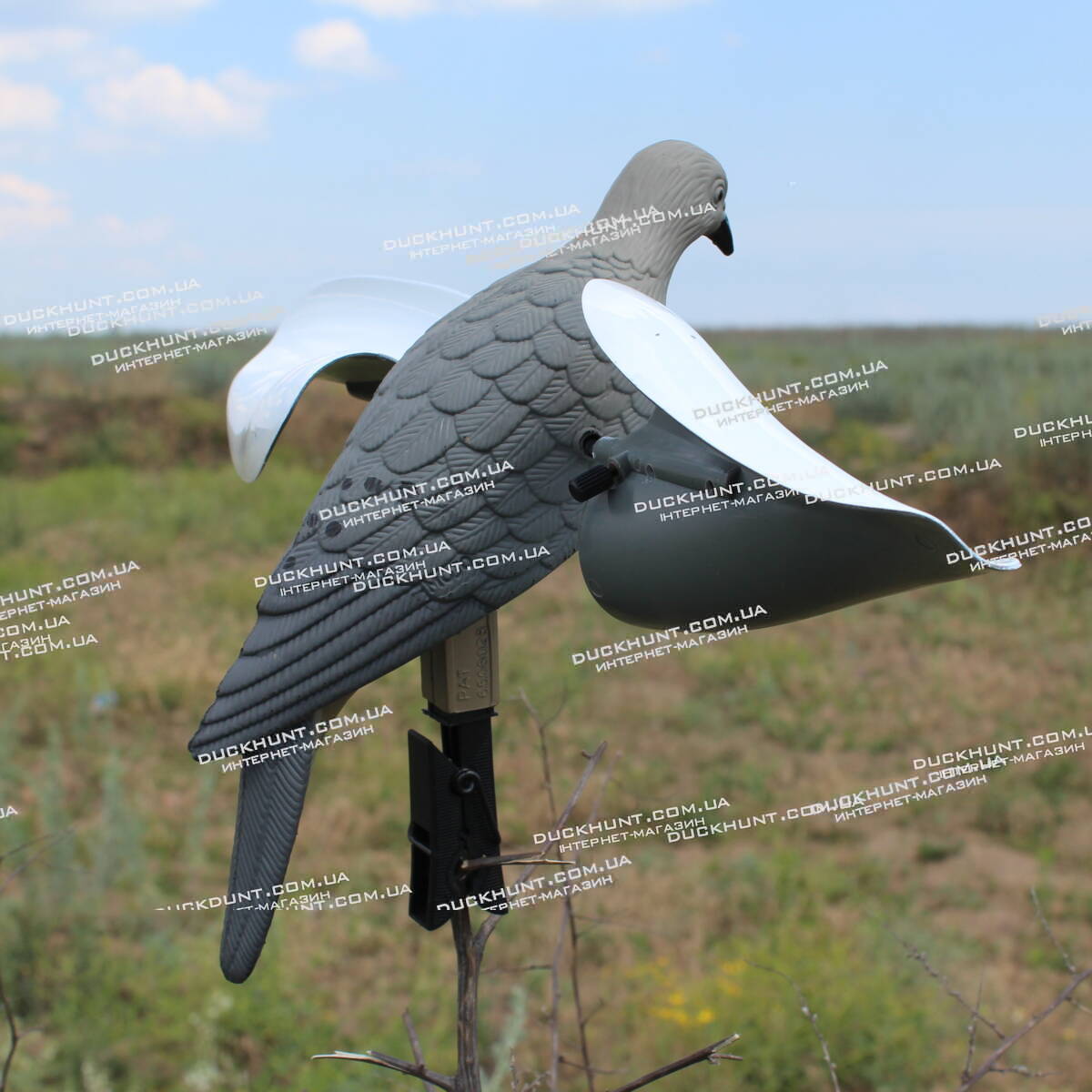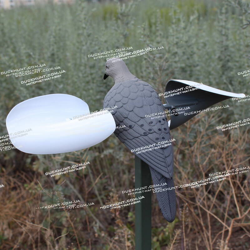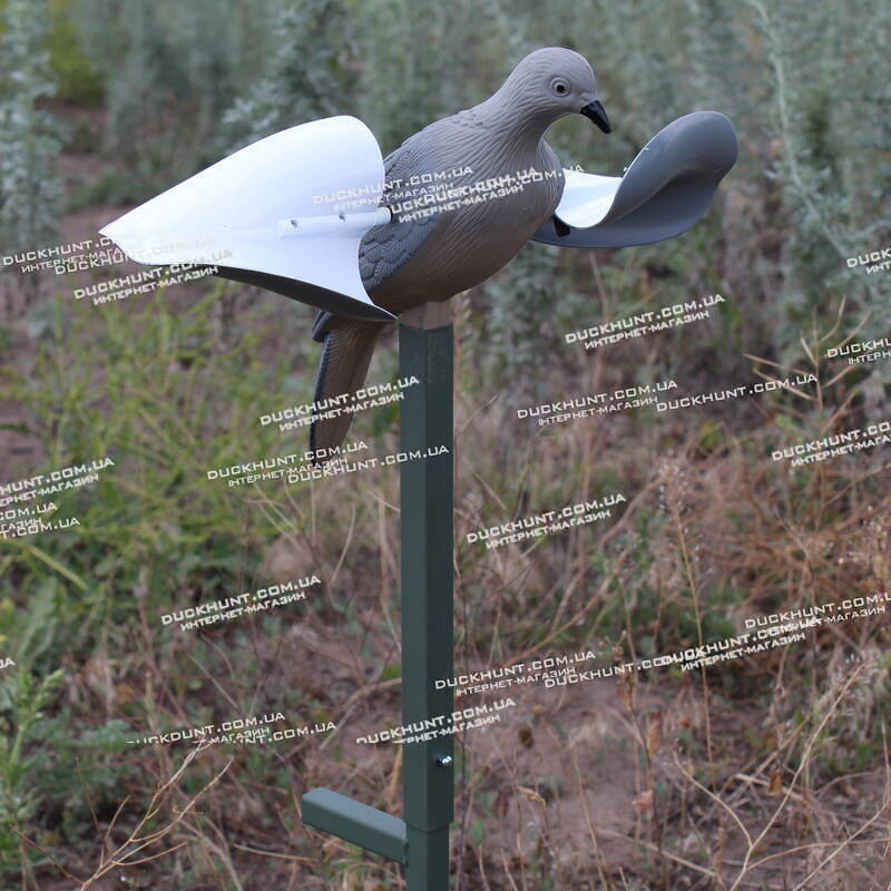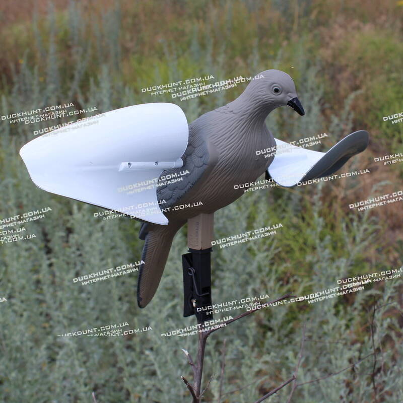 Горлиця з крилами, що обертаються від фірми Mojo Wind Dove . Це опудало імітує голуба з крилами, що махають. Досить невеликого вітру, щоб крила почали обертатися і привертати увагу голубів, що пролітають. Крила знімні. Це опудало можна використовувати без крил.