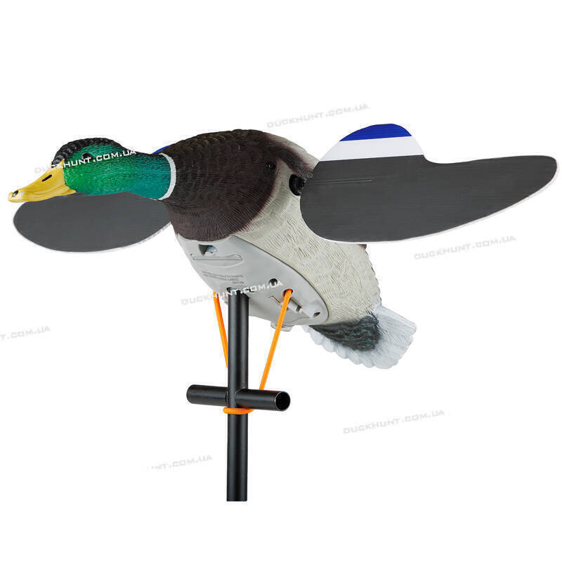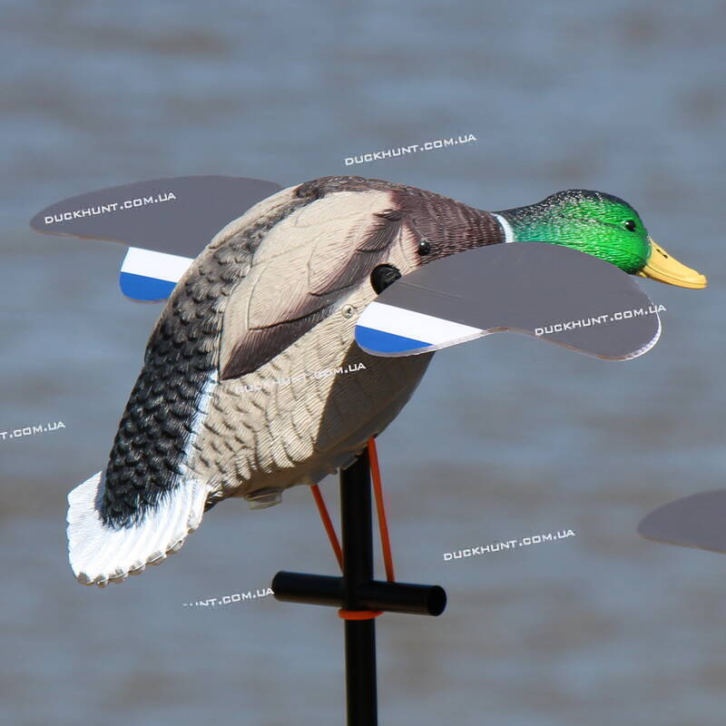 За рахунок крил, що обертаються, опудало імітує посадку качки, чим привертає увагу всіх водоплавних. Крила мають магнітний конектор і рухаються за допомогою електроприводу. Корпус виготовлений з пластику "EVA" (м'який пластик-легкий та еластичний полімерний матеріал), детальне промальовування оперення, реалістичне забарвлення та форма опудала. Новий варіант кріплення опудала на стійку, установка займає лічені секунди, при транспортуванні через відсутність частин, що випирають, займає набагато менше місця. Працює від чотирьох батарей АА .
