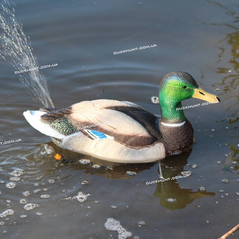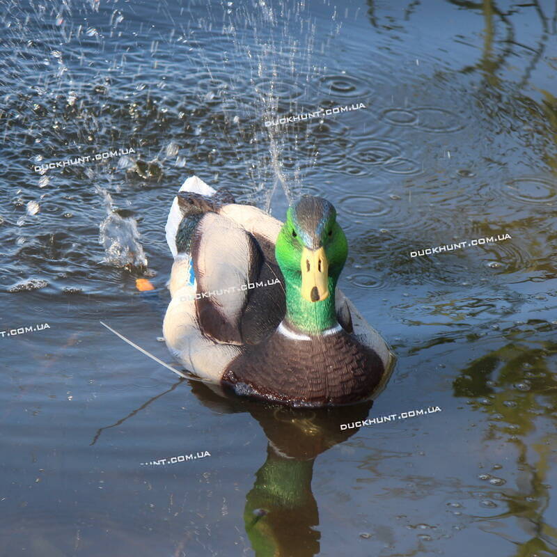 Super Swimmer HD - це абсолютно нова концепція візуальних приманок, що зібрала всі кращі якості попередніх моделей. За рахунок вбудованої помпи опудало імітує активно плаваючого селезня, який при цьому розбризкує воду лапами. Фонтанчики води оживлять вашу зграю опудал і додадуть реалістичності в штильову погоду на полюванні. Неперевершена реалістичність досягається сучасними матеріалами, ударостійкий пластик "EVA" та спеціальне забарвлення, здатне витримати важкі мисливські випробування. Детальна промальовування оперення опудала здатна обдурити навіть найобережнішу, не раз стріляну качку. Пучело має два режими - постійна робота і періодична робота (10 секунд працює і 5 секунд пауза). Живлення АКБ 6 Вольт. Сопла помпи можна розгортати під будь-якими кутами і виставляти на власний розсуд. Також можна перекрити одне сопло для кругових рухів опудала на воді.