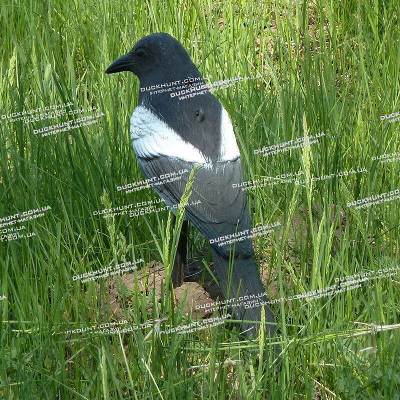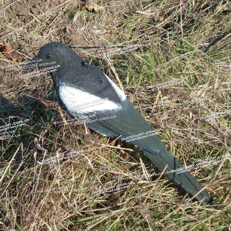 Це чучело сороки SPORT PLAST 110-00 призначене для полювання на хижака. Так само це опудало використовують для полювання на гусака та качку, виставляючи його осторонь вашої основної зграї опудал гусей або качок. Як відомо, сорока дуже обережна та розумна, тому для багатьох птахів та тварин вона є основним сигналізатором небезпеки нарівні із сірою вороною та чайкою. У комплект входить пластикова штанга для встановлення опудала на землю. Матеріал: пластик
