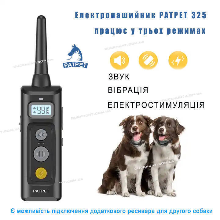 Patpet 325 — це дресувальний електронашийник з радіусом дії до 600 м.