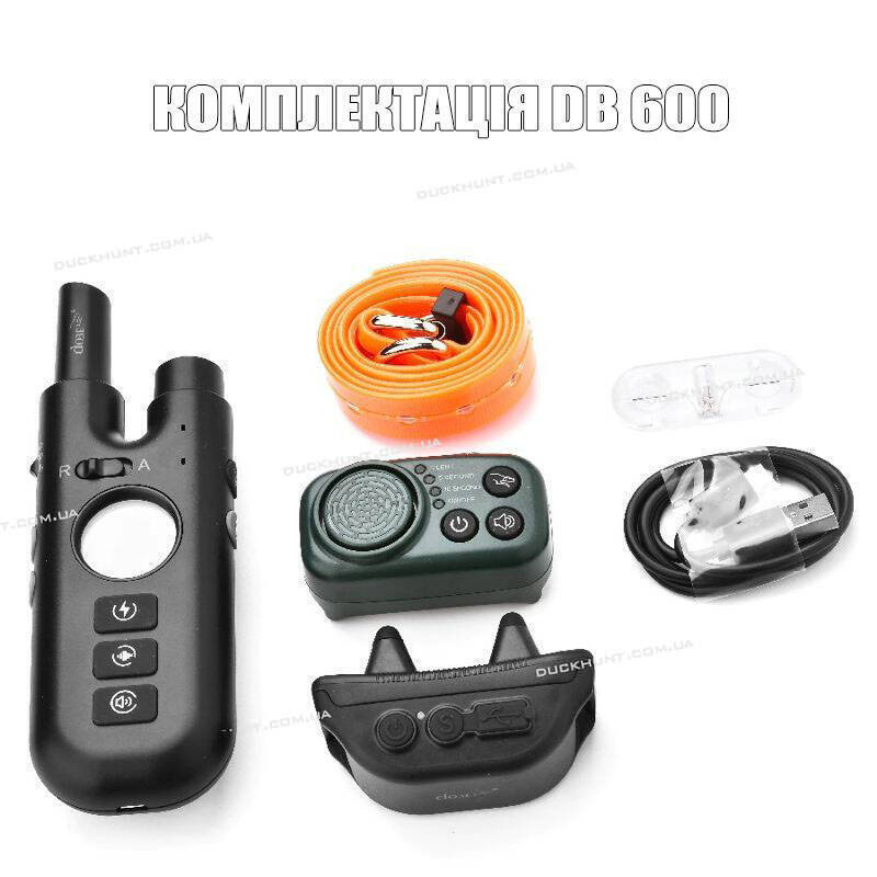 Ресивер и бипер DB600 має зменшену конструкцію, що підходить для всіх порід собак вагою від 5 до 70 кг. TPU нашийник яскраво-жовтогарячого кольору регулюється від 15 до 70 см, зайву частину можна відрізати ножицями.