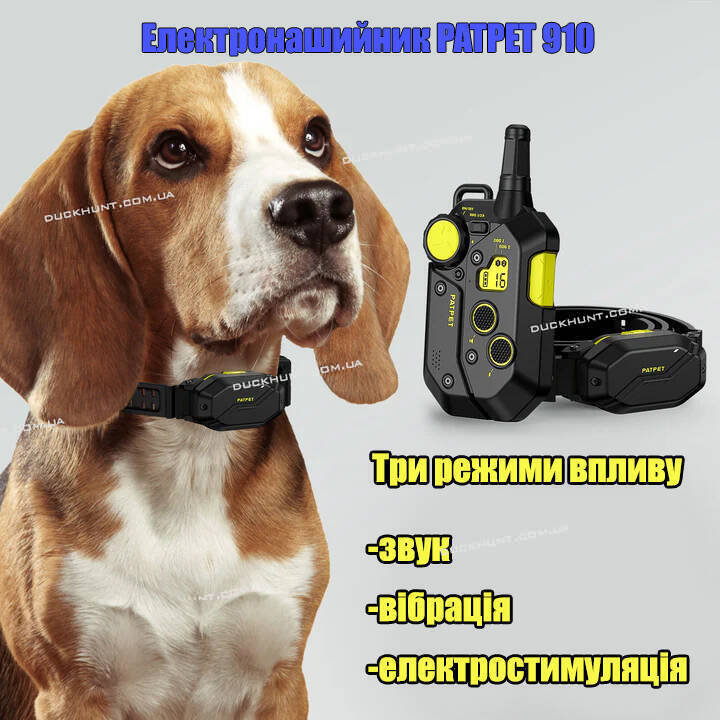 PatPet 910 має чудове поєднання характеристик і функцій для мисливського електронашийника. PatPet 910 має великий діапазон передачі команд (до 9200 метрів), що разом із мінімальним відгуком ресівера дозволяє моментально зупинити собаку, якщо вона втратить контроль під час прогулянок або полювання.