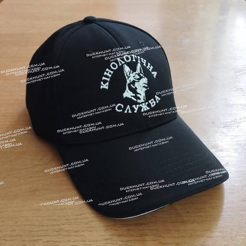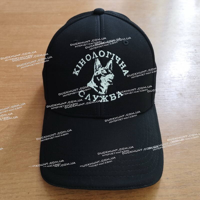 Кепка-бейсболка "Кінологічна служба" – чорного кольору. Завдяки використанню якісної тканини, з регульованою металевою застібкою – бейсболка забезпечує комфорт, зручність та функціональність використання. Матеріал: Легка і міцна "дихаюча" поліестерова тканина.