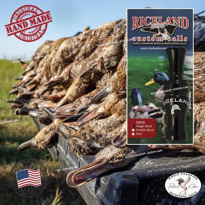 Манки Riceland Custom Calls (Райсленд Каст Колс)-це манки ручної роботи і точної настройки. Манки виробляються відомими в Америці та Європі, фахівцями з полювання на водоплавних-Джеймсом Майєрсом та Біллом Деніелсом, які неодноразово ставали переможцями на змаганнях із підманювання водоплавних. Цей манок дуже простий у керуванні. Компанія Riceland Custom Calls гарантує реалістичність звуку, надійність та простоту управління.