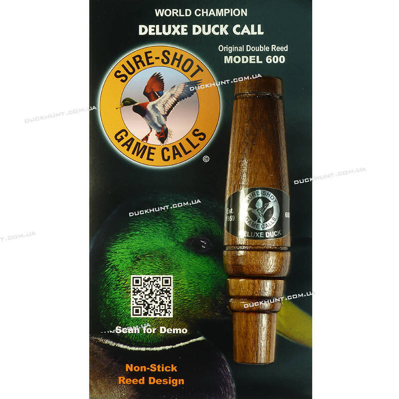 Манок на крякву Sure-Shot Deluxe Duck Call 600. Манок виготовлений з канадського чорного горіха, який пройшов певну обробку та спеціальні умови сушіння. Кожен манок має ручне налаштування звукового вузла.