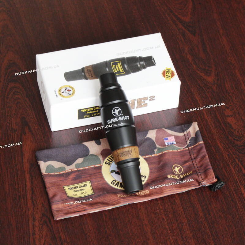 Sure-Shot Yenzen ONE 2 - це абсолютно новий стандарт має запатентоване гвинтове з'єднання мундштука та горна. Манок двоязичковый. За рахунок зміненого звукового вузла ця модель має гучніший звук у порівнянні з попередньою моделлю. Кожен манок має ручне налаштування звукового вузла. За рахунок міцного корпусу, який неможливо зламати і реалістичного звуку, манок Sure-Shot Yenzen ONE 2 використовують мисливці у всьому світі.
