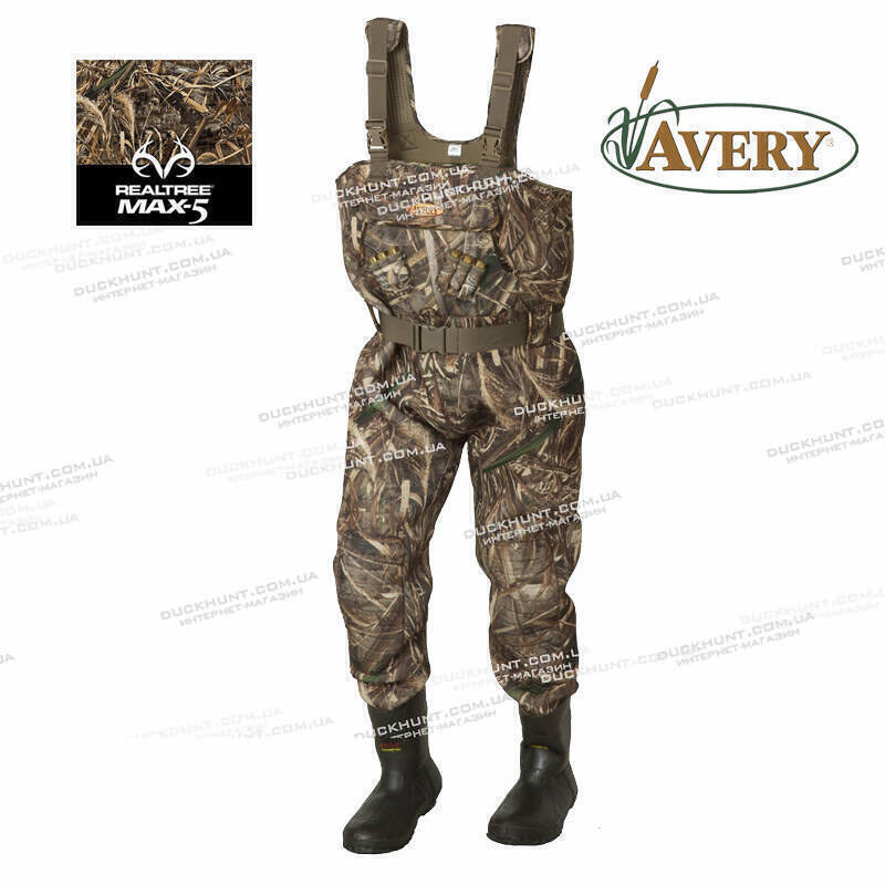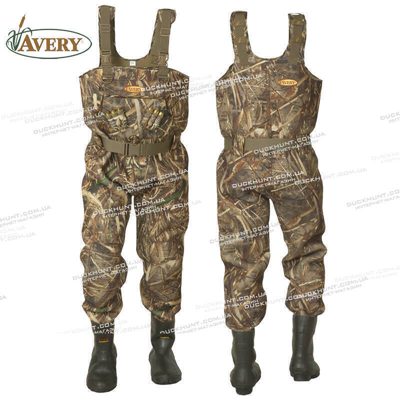 Неопренові вейдерси Avery Neoprene Wader створені для безстрашних мисливців на водоплавну дичину, які полюють на качок навіть коли на воді вже з'явився перший лід. Забродний костюм 100% непромокальний і дуже теплий, дає змогу перебувати тривалий час у воді за її температури близької до 0 градусів. Виготовлений з армованого неопрену преміум'якості завтовшки 5 мм із підкладкою з тканини Jersey для додаткового тепла та комфорту.