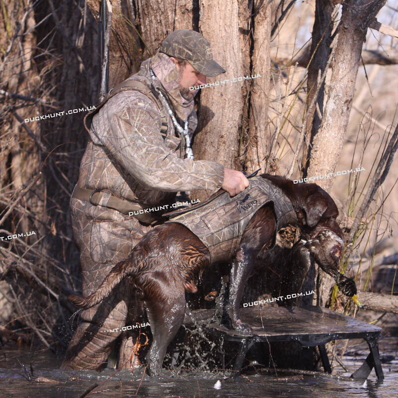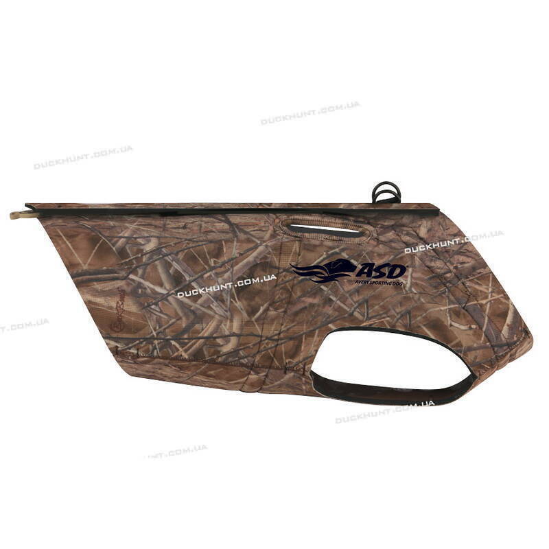 Жилет для собак Avery Boater's Dog Parka. Виготовлений з 5 мм м'якого та міцного неопрену та дозволяє собаці почуватися комфортно в мінусову температуру. Ідеально підходить для полювання з човна або із засідки. Спеціальний виріз-ручка дозволяє швидко та легко допомогти собаці забратися в човен чи скрадок. Вшита в жилет поліестерова стропа додає міцності і надійності. Жилет виконує кілька функцій: маскує, гріє та захищає від предметів або рослинності, які можуть поранити вашого чотирилапого друга.