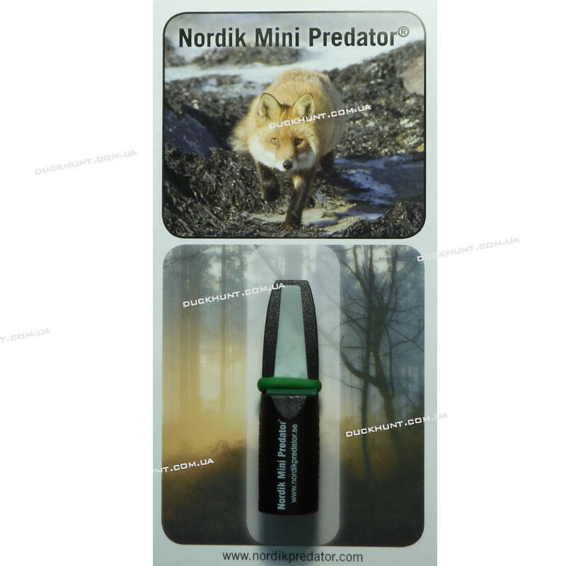 Манок НОРДИК МІНІ ПРЕДАТОР - імітує крик пораненого зайця та писк гризуна. Манок розроблений спеціально для полювання на хижаків у зимових умовах. Він виготовлений з морозостійкого пластику і може використовуватися за низьких температур, більше того, він дуже простий у застосуванні. Цей манок має більш тонку мембрану, ніж інші моделі цієї серії, і виробляє широкий діапазон звуків, які чути на дуже великій відстані.