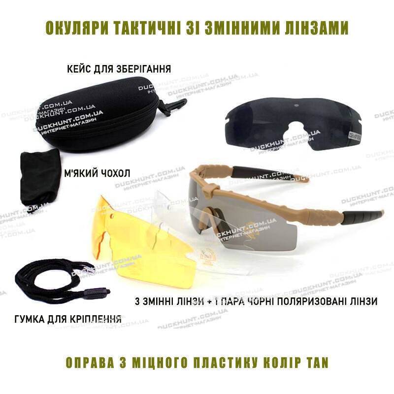 Окуляри тактичні Military TAN 4 змінних скла+кейс