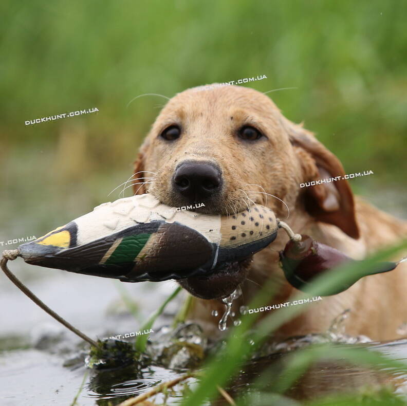 За рахунок своєї конструкції виробляє у цуценят правильну хватку при подачі дичини. Шнур на хості дозволяє не тільки далеко закидати паноску, але і служить для кріплення стримеру запаху качки. Вага: 160 грам, довжина 27 см.