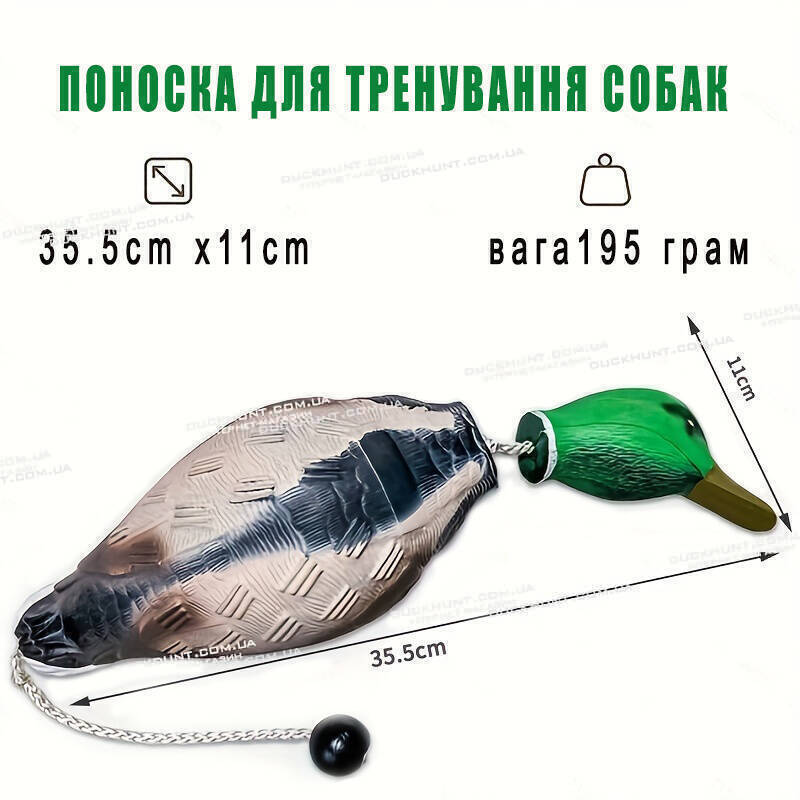 Обов'язково підбирайте поноску-апорт виходячи з розмірів та переваг Вашого собаки. Для якісних тренувань рекомендовано наносити на носіння запахи дичини. Вибрати запах дичини можна за посиланням https://duckhunt.com.ua/catalog/zapahi-dichi