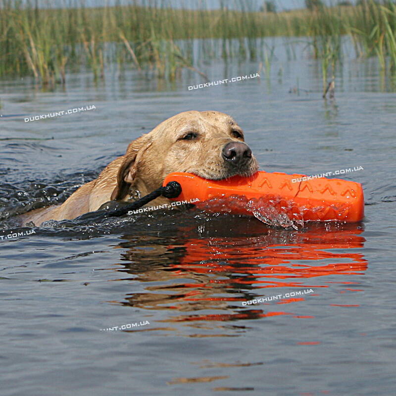 Поноска не вбирає воду і не тоне, тому ідеально підходить для тренувань собак на воді та на суші, 25 см мотузка у верхній частині, збільшує дальність закидання поноски. Ефективно при використанні концентрату запаху дичини.