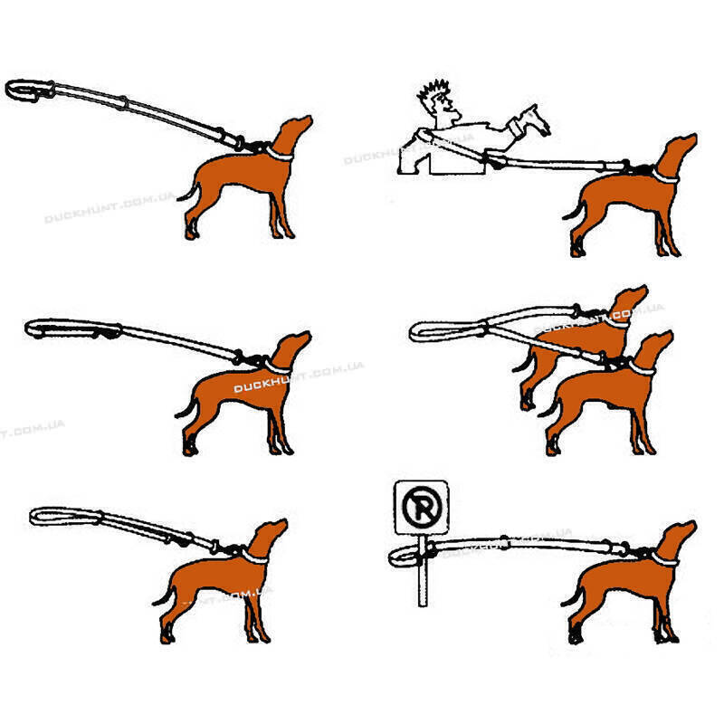 Повідець-перестібка це новий погляд на амуніцію для собаки. Вона дозволяє використовувати її як мінімум як шість різних повідків:
