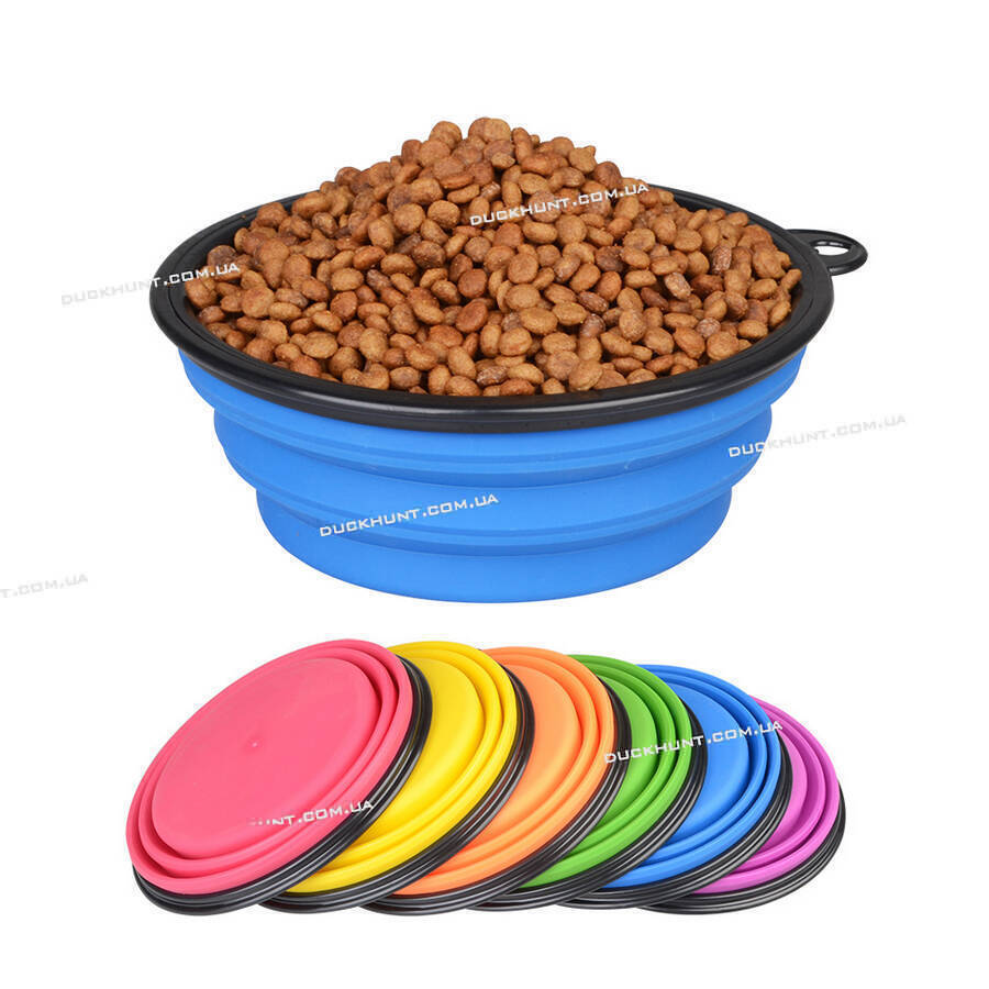 Складана силіконова миска HUNTING DOG Food Bowl - ідеально підійде для годування Вашого улюбленця на полюванні або в дорозі. Миска виготовлена із міцного матеріалу - силікону. Миска легко складається та миється. Відмінно підійде для корму та води. За рахунок пластикового окантування миска не деформується. На мисці є петелька, тому її можна просто пристебнути до рюкзака чи пояса. У складеному стані товщина миски становить 1,5 см (2,5 см) і її можна легко пристебнути до Вашого повідця, рюкзака, сумки, джинсів та багатьох інших речей. Тепер Вас не дратуватиме металевий гуркіт у багажнику автомобіля! За рахунок яскравого кольору миска виділяється на землі і шанс забути миску зменшується!