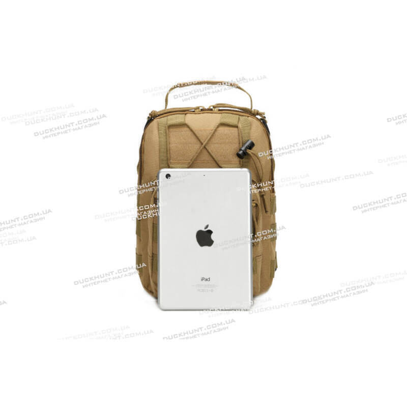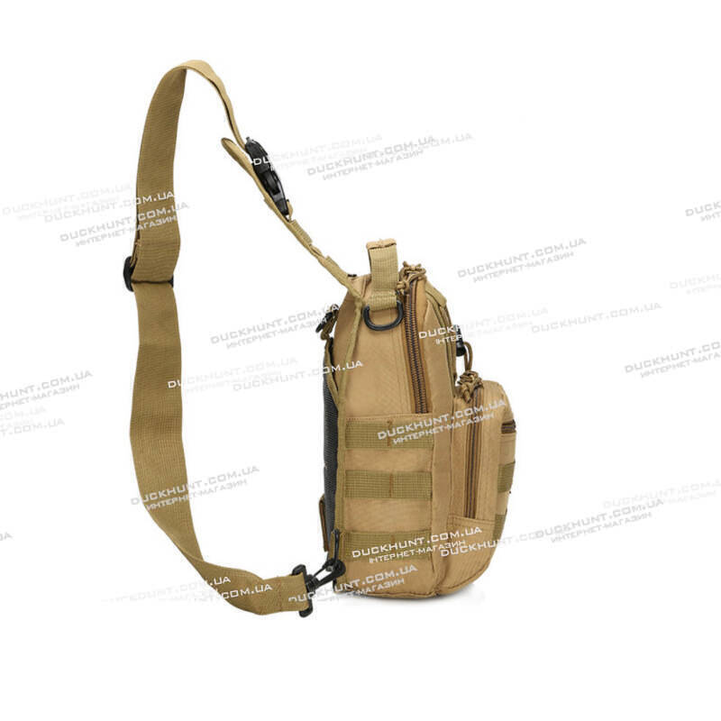Тактична сумка на плече виготовлена з міцної тканини має якісне пошиття і фурнітуру. Має одне основне відділення та дві додаткові кишені. Об'єм сумки — 6 літрів. Розмір (26х19х10 см)