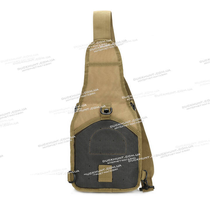 Тактичну сумку можна носити за плечем, на грудях або на животі. Плечовий ремінь регулюється з урахуванням індивідуальних особливостей фігури кожного. Сітчаста спинка добре вентилюється і забирає від тіла користувача піт, тому носити на собі в жарку погоду сумку буде досить комфортно. Ззаду передбачений хлястик на липучці. Він стане додатковим поясним фіксатором, щоб під час активного руху сумка не хлопавка по тілу.