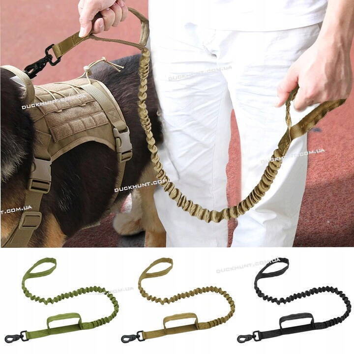 Повідець дозволяє поглинати будь-які ривки собаки за допомогою високоміцного амортизатора під час виконання завдань, щоденних прогулянок або активних занять. Виготовлено тактичний повідець із міцного нейлонового матеріалу з посиленими рядками. Повідець має міцний металевий карабін, який може обертатися і при цьому повідець не скручується. 2 міцні ручки, одна на кінці, а інша ближче до кріплення нашийника, можуть задовольнити будь-які потреби у навчанні. Тактичний повідець легкий у використанні. Достатньо одного клацання застібки і собака готова до прогулянки, для зняття також - одне лужок і повідець знятий.