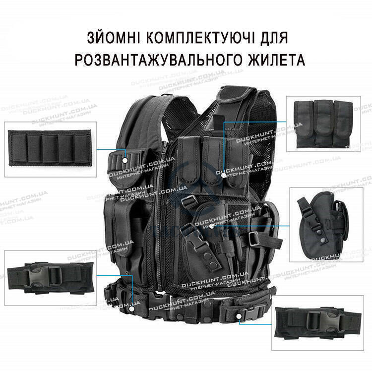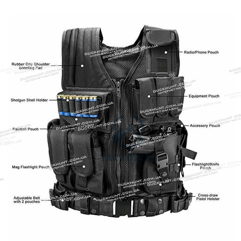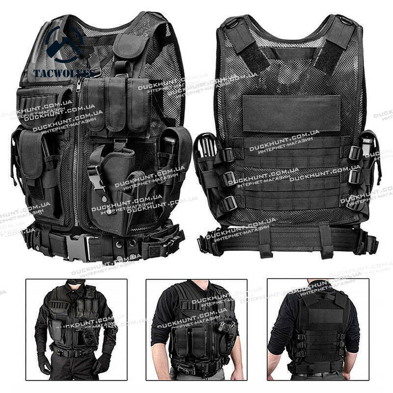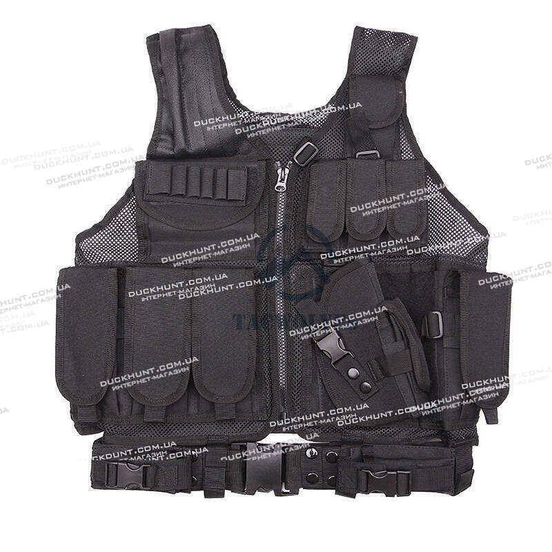 Тактичний розвантажувальний жилет з кобурою колір чорний
