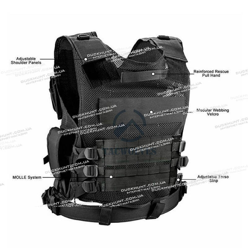 Тактичний розвантажувальний жилет розроблений спеціально для військових, працівників спецслужб та охоронних структур. Жилет розвантаження дасть змогу зручно носити додаткові магазини, патрони, воду, аптечку, рацію, продуктові паяння та інші тактичні аксесуари. Все необхідне спорядження, необхідне для виконання тактичних завдань, є під рукою.