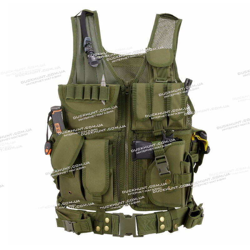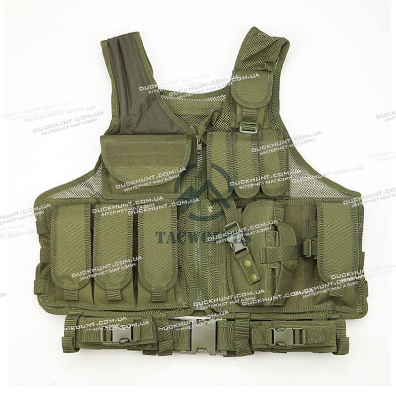 Тактичний розвантажувальний жилет з кобурою колір зелений